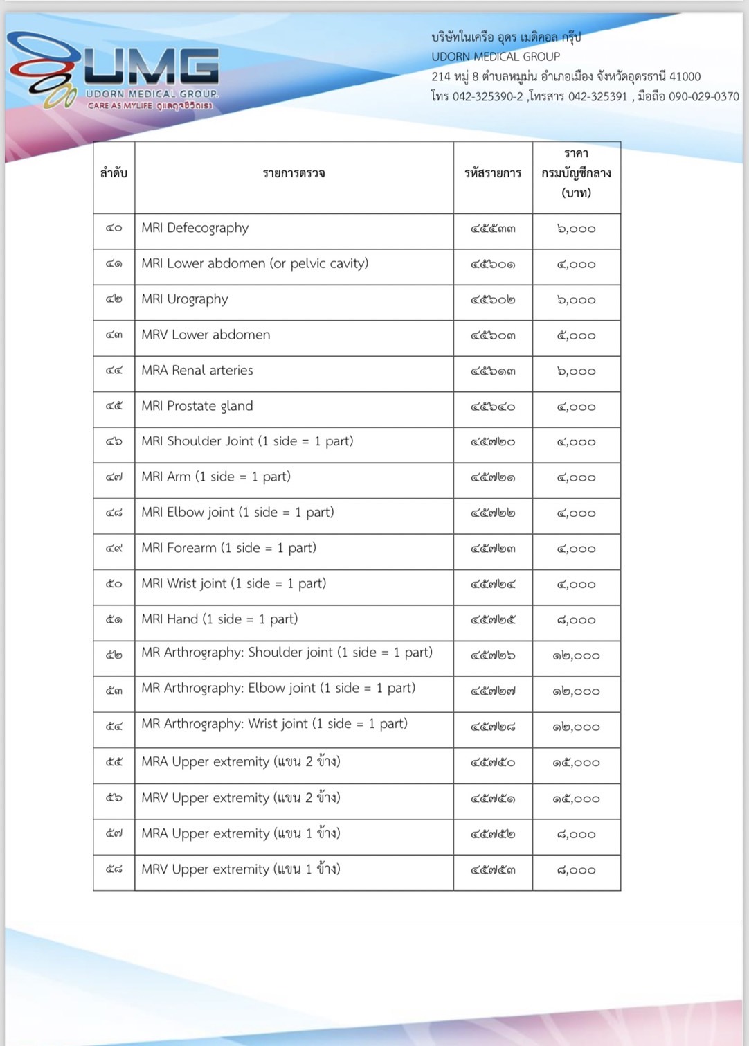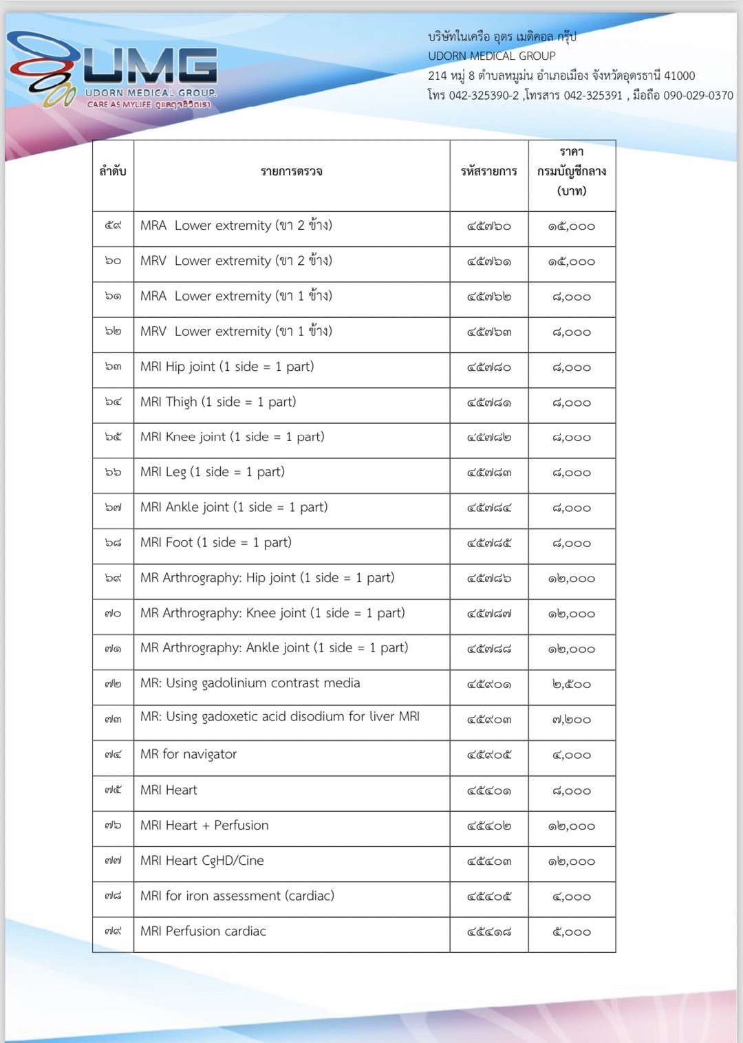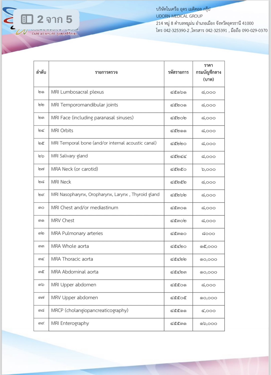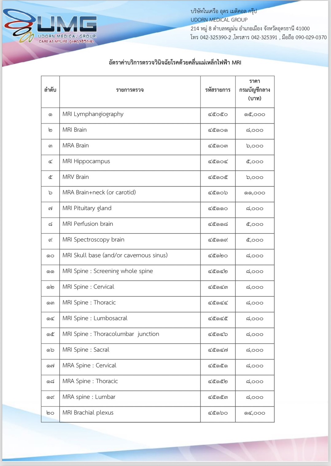 อัตราค่าบริการ MRI