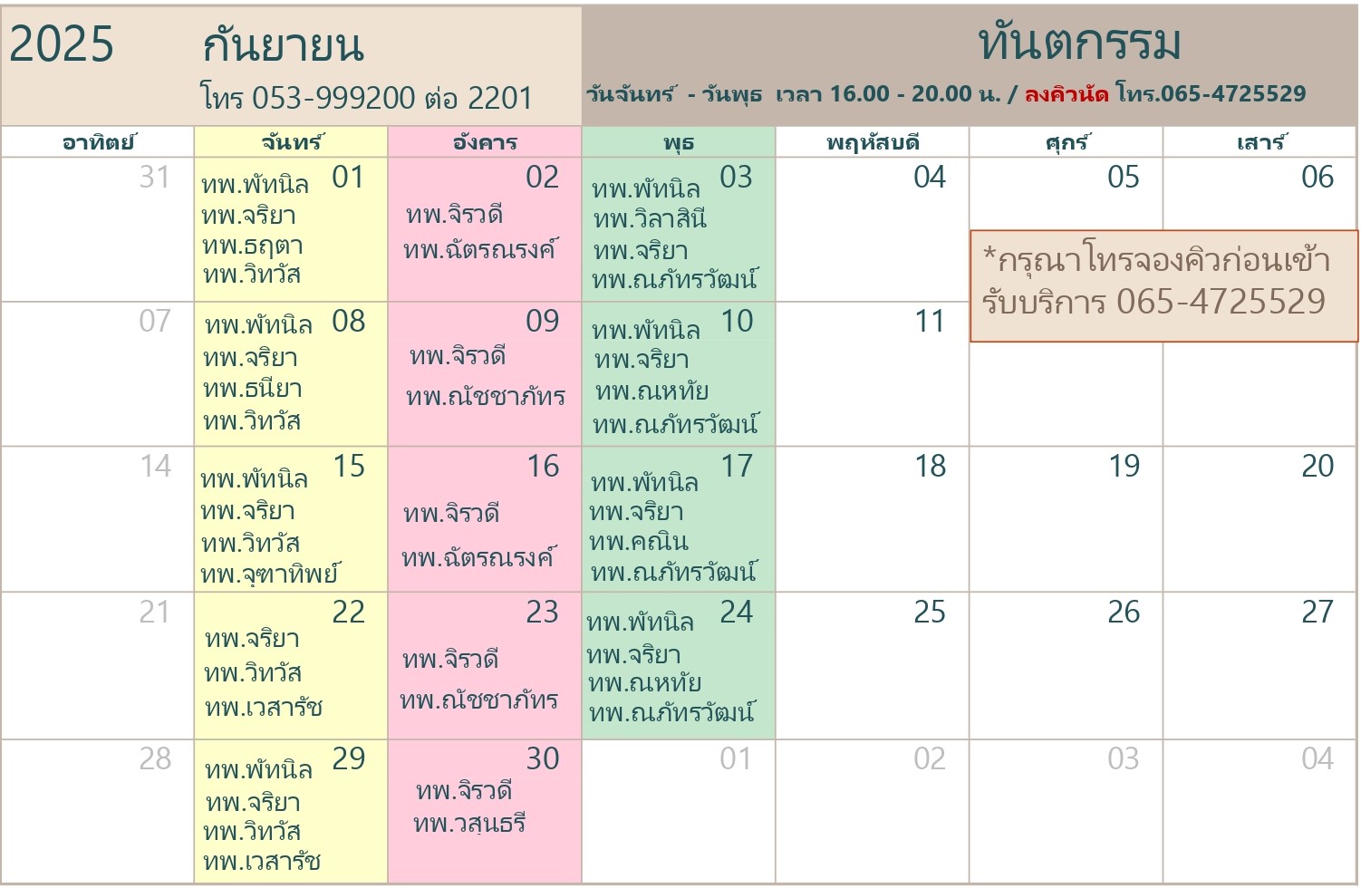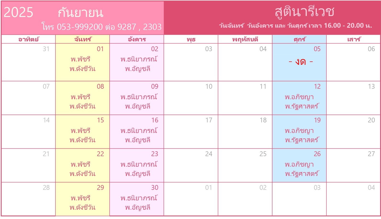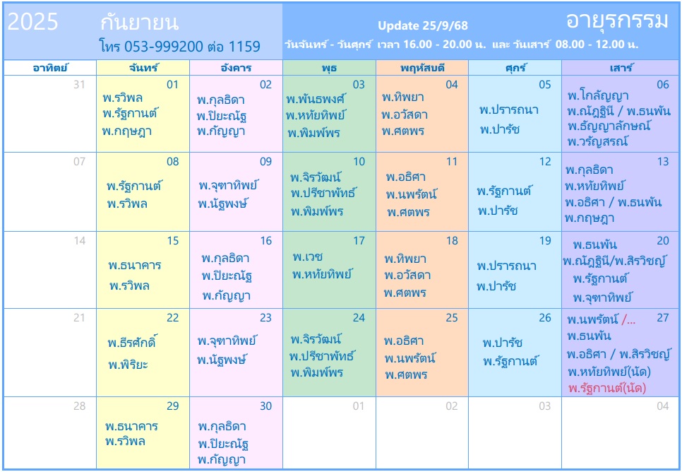 อังคาร (2,4) | พญ.นันทวัน สุอังคะ | วว.กุมารเวชศาสตร์ , วว.กุมารเวชศาสตร์โรคหัวใจ |