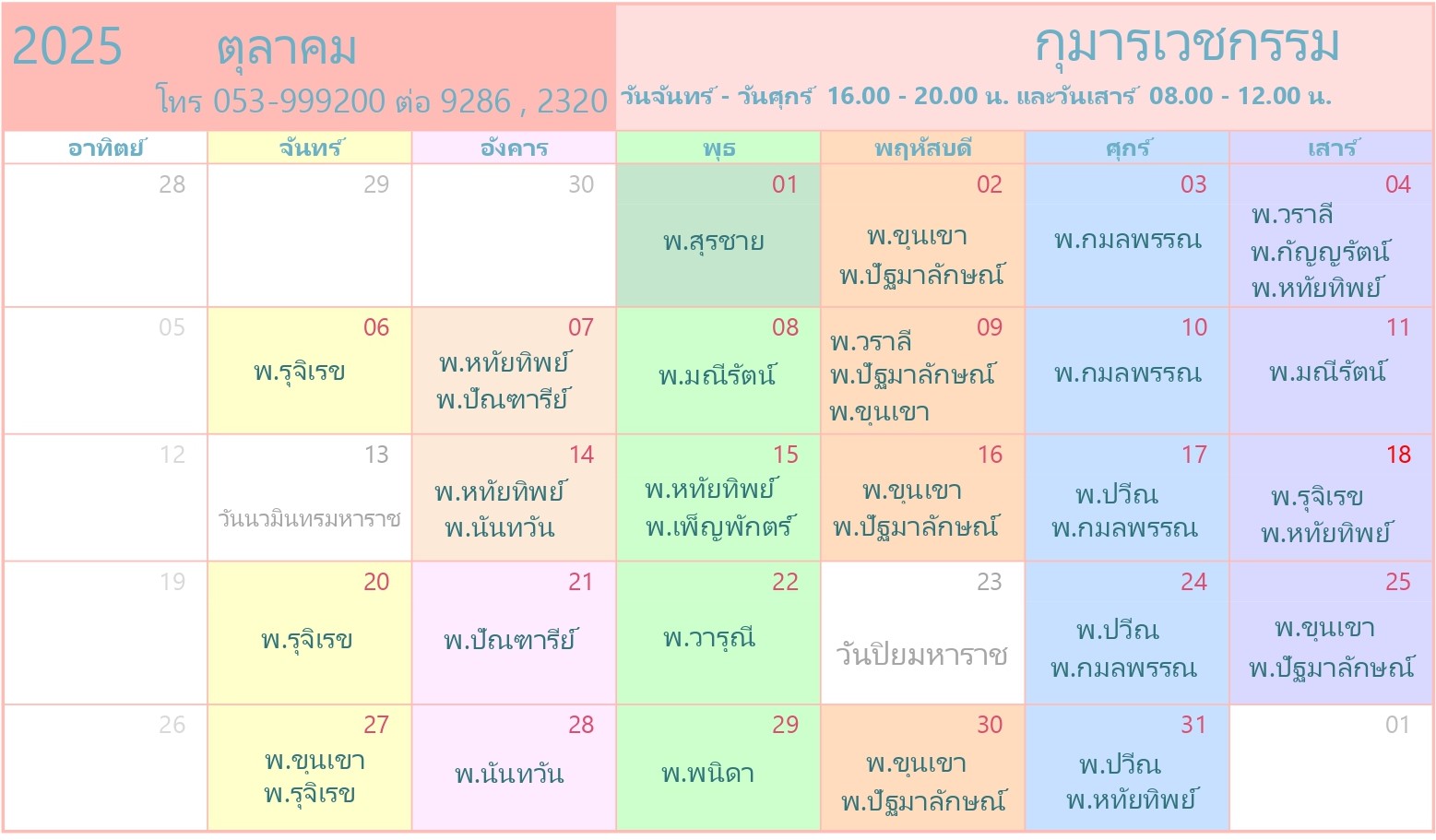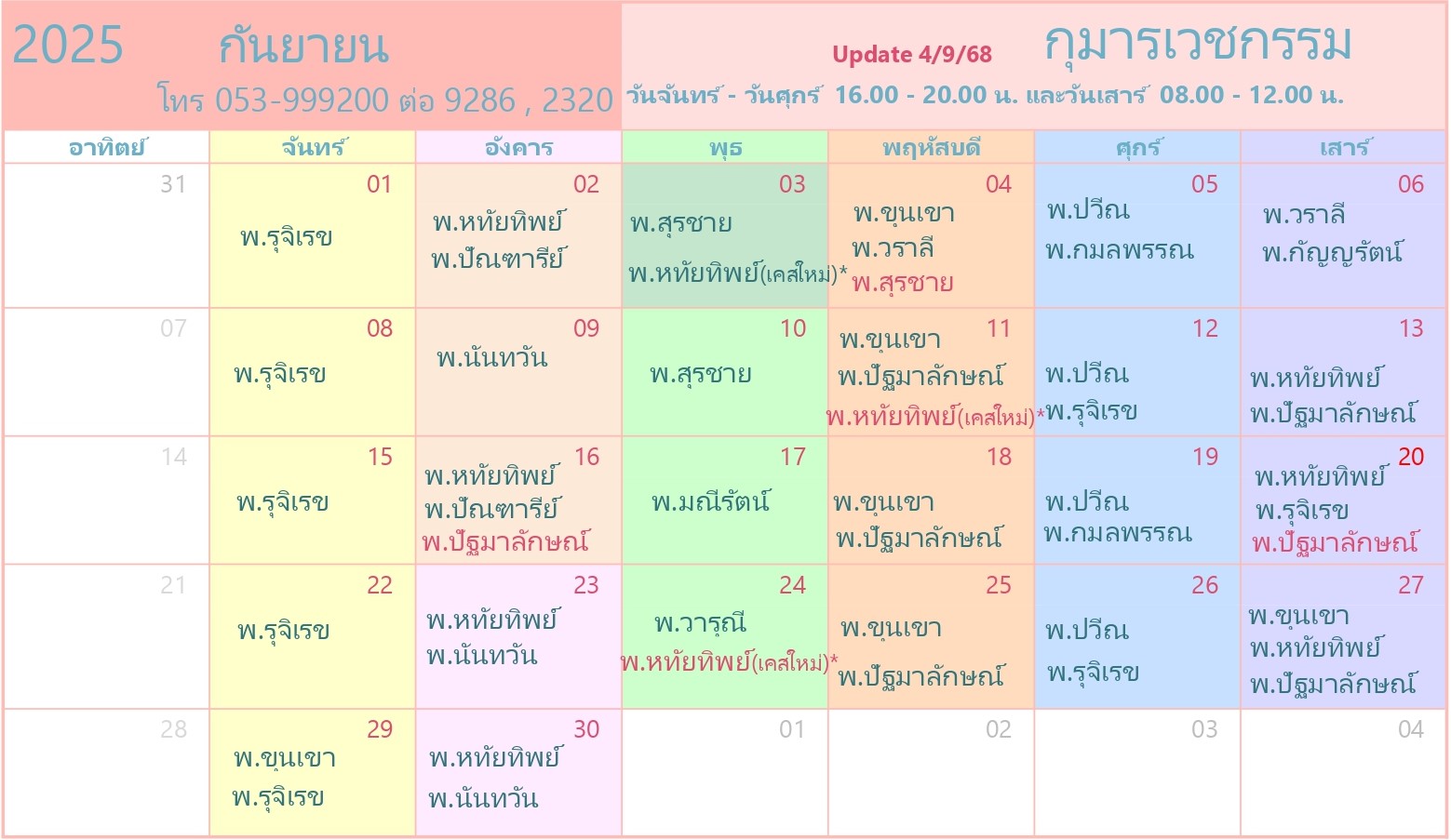 อังคาร (1,3) | พญ.บุฑบท พฤกษาพนาชาติ | วว.จิตเวชศาสตร์ เด็กและวัยรุ่น |