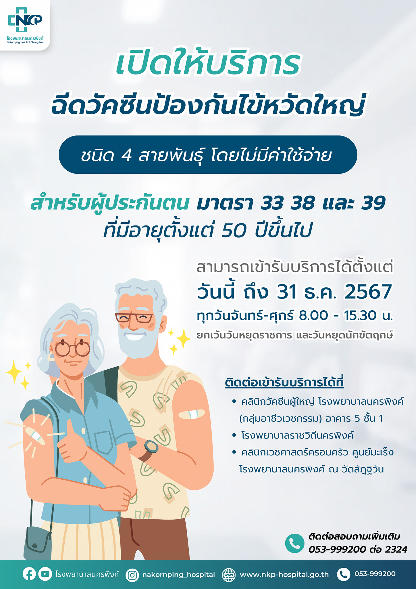 2. หากมีข้อสงสัยติดต่อคลินิกวัคซีนห้องเบอร์ 51 (อาคาร 5 ชั้น 1) ในวันเวลาราชการวันจันทร์ -วันศุกร์ เวลา 08.00-11.30 น. และเวลา 13.00-15.30 น. หรือเบอร์โทรศัพท์ 053-999200 ต่อ 2324