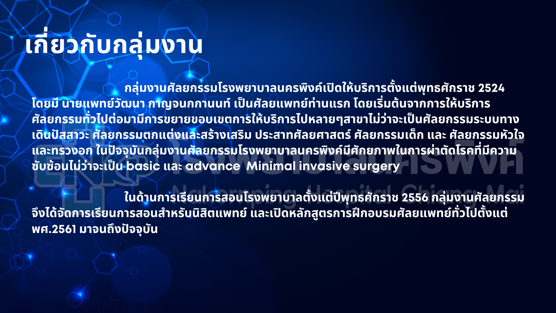 กลุ่มงานศัลยกรรม โรงพยาบาลนครพิงค์ Department of Surgery