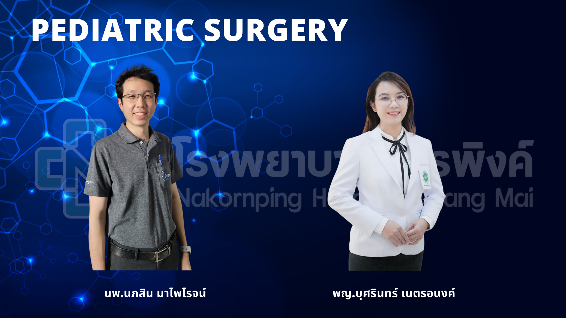 | ศัลยกรรมเด็ก | นพ.นภสิน มาไพโรจน์ พญ.บุศรินทร์ เนตรอนงค์ |